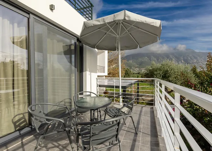山景色を望むPagani Green - Luxury Studio A3はカラマタ軍事博物館から約2.6kmに位置しています. 1室のベッドル-ム,1室のバスル-ム,テラスがあります.